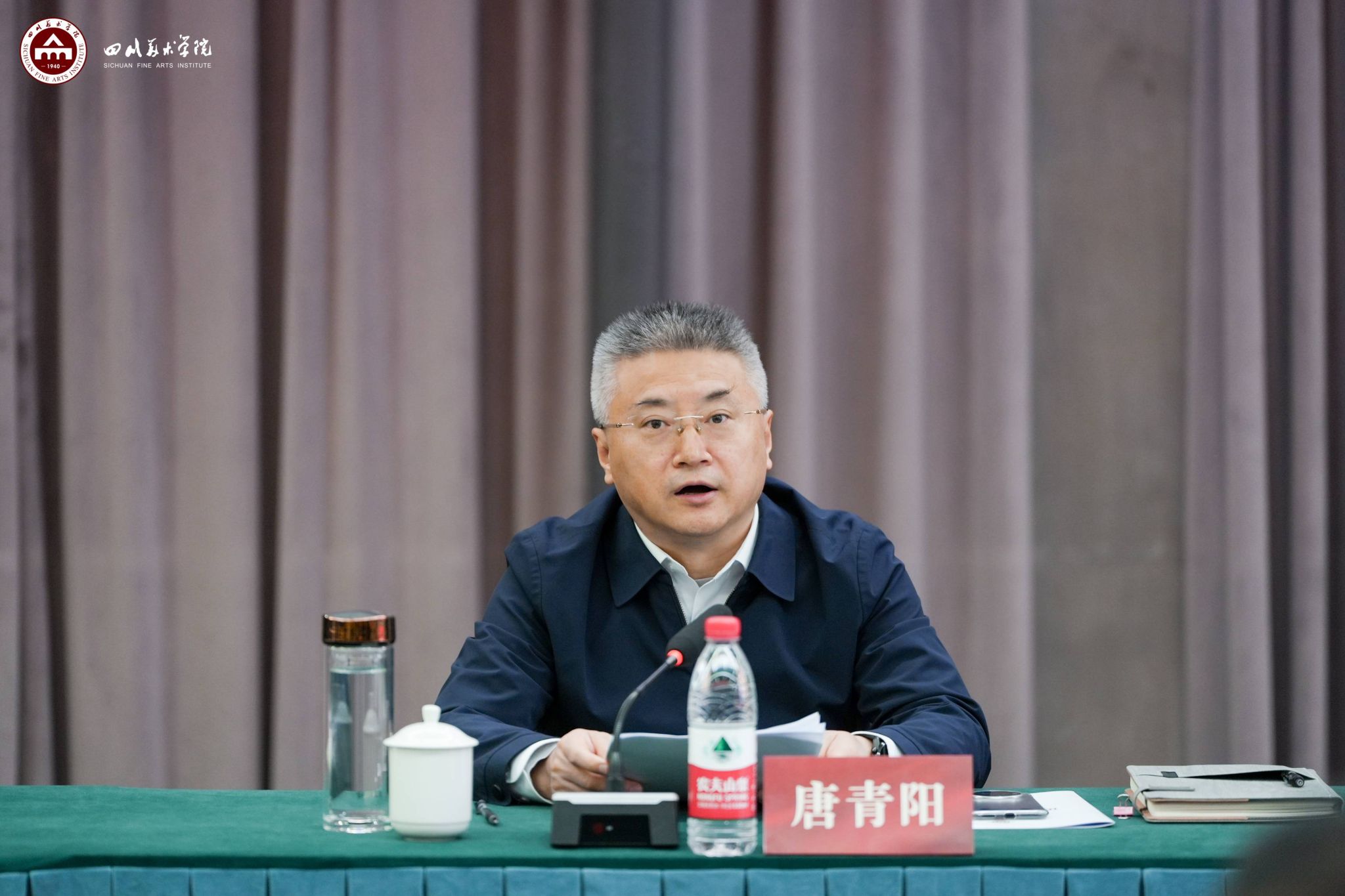 唐青阳号召全校师生以本次大会为新的起点,在习近平新时代中国特色社会主义思想指引下,求实创新、主动作为,勇开新局、再攀新高,以更高质量的创作、更高水平的科研助推学校“双一流”建设,助力重庆文化强市建设和中国式现代化建设。