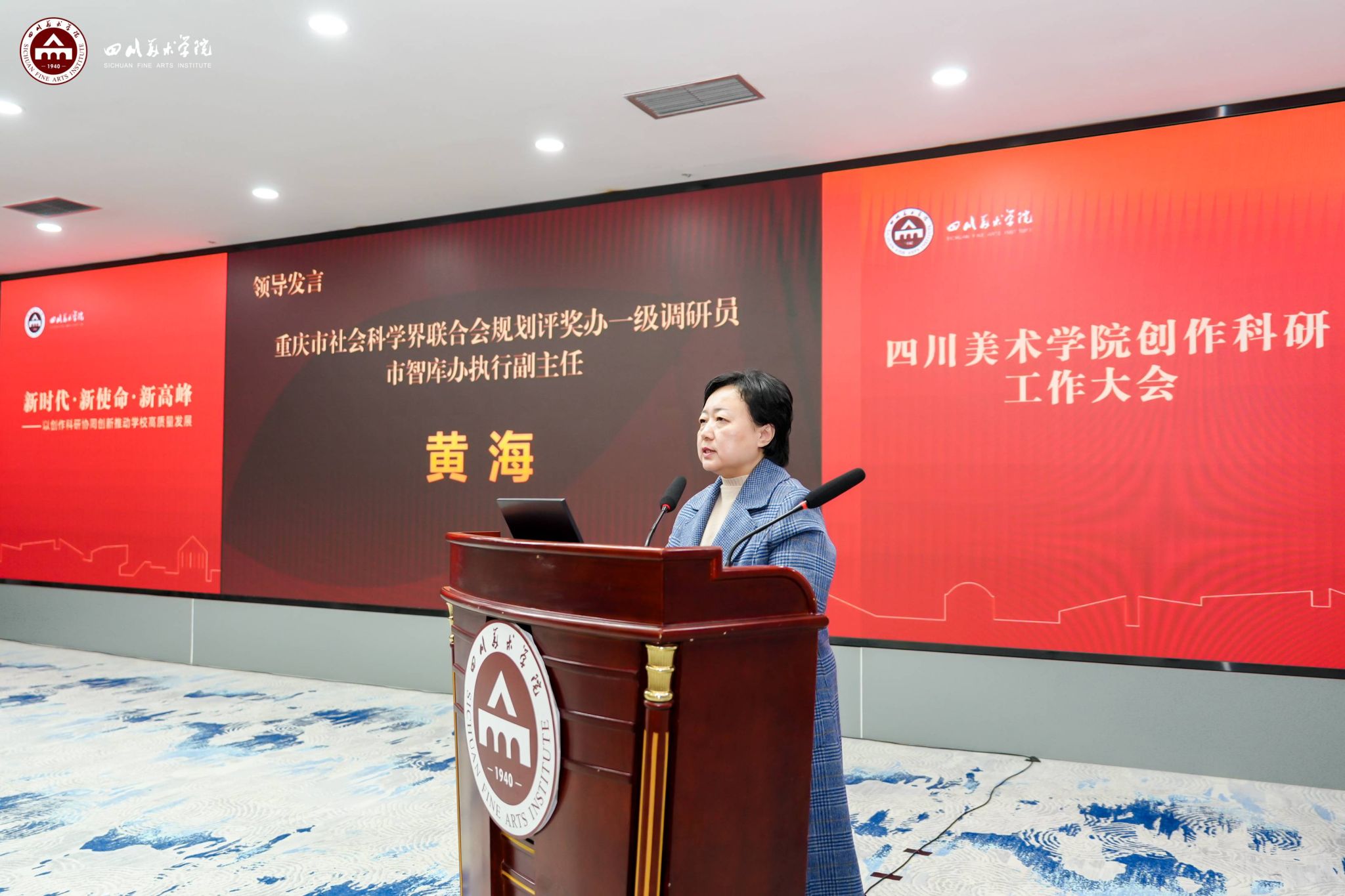 重庆市社会科学界联合会规划评奖办一级调研员、市智库办执行副主任黄海回顾了近年来川美在国家级项目、社科联项目取得的成绩,并针对科研成果如何高效地向智库成果转化提出了一系列具有建设性的意见和建议。