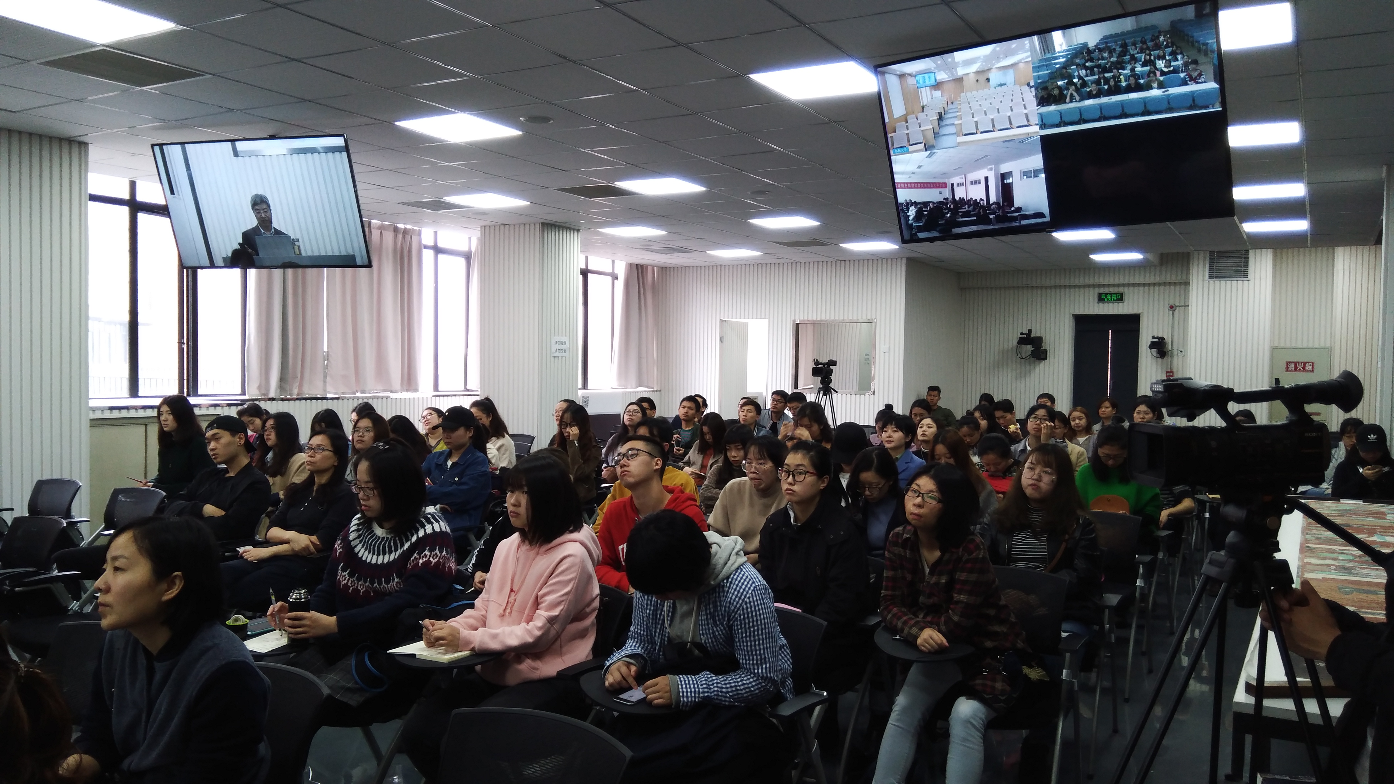 本次共享课程由敦煌研究院副院长赵声良主讲,课程主题为“敦煌艺术的继承与创新”。赵声良通过我校互动平台,向郑州大学、贵州财经大学、太原理工大学等院校进行跨校直播交流,各校参与同学踊跃发言,课堂气氛十分热烈。本次跨校、跨地区直播互动交流受到现场师生以及校外众多学子一致好评,全国众多学子通过WEB端或手机APP观看直播过程中也都踊跃在平台上通过文字互动交流。