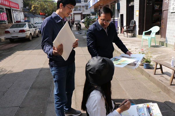 本次外出实践教学,偏岩古镇共聚集了我校设计艺术学院、公共艺术学院和美术教育系的2017级9个班共计270余名学生。彭林权与师生亲切交谈,对冒着烈日不停来回奔走指导的带队教师表示感谢,对认真习作、勤勉努力的学子们表示了赞赏,并激励同学们积极展示川美艺术教育的学习成果,扬当代大学生的新时代风貌。