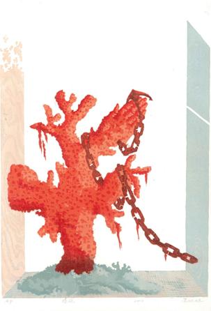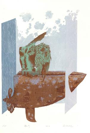 由三幅丝网和三幅凹版组成,想强调一种内外的强烈的情绪对比