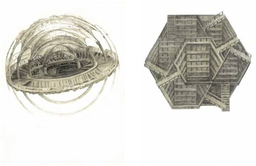 我把综合拼贴画面中的荒诞、超现实和“巨大的”这种感觉延续到了综合版中。在综合版中,我发现了另一条线索,便是与“巨大 的”相对的一种感觉,那种博斯的《人间乐园》中出现的“小世界”的感觉。从这张版画开始,我对自己绘画的方向感逐渐有了疏离, 似乎方向与线索多了很多,但没有一条是清晰明确的。