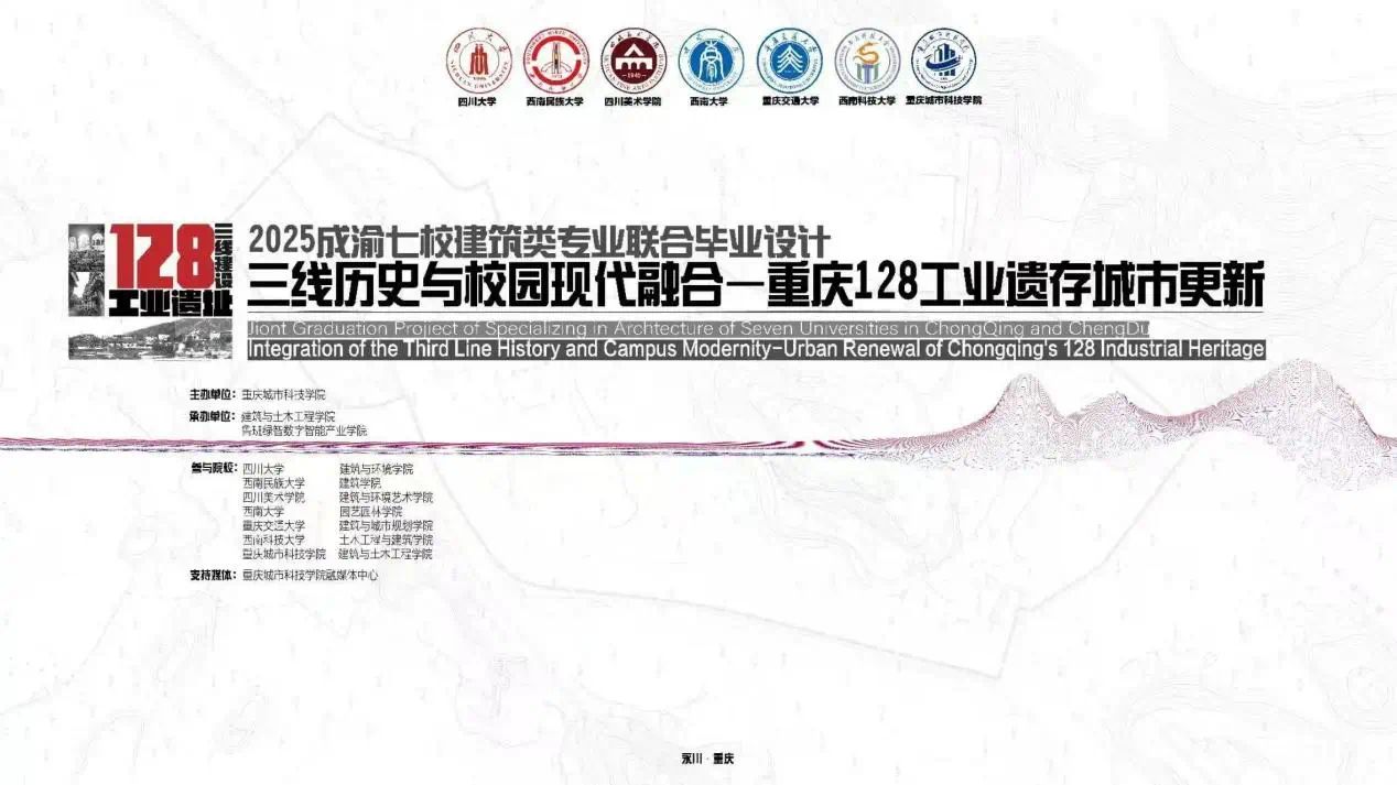 本次联合毕业设计由重庆城市科技学院主办,重庆城市科技学院、四川美术学院、四川大学、西南民族大学、西南大学、重庆交通大学、西南科技大学七所高校及相关企业参与其中,共同研究工业遗存保护与现代校园功能创新的议题。