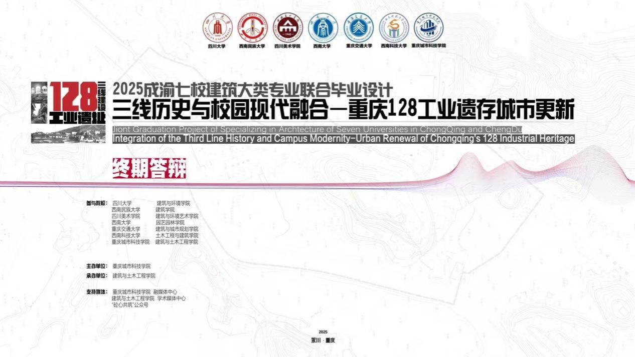 本次联合毕业设计以“重庆128工业遗存城市更新”为命题,深度聚焦三线历史与校园现代的融合。我院学子团队深入调研、大胆创新,巧妙挖掘工业遗址背后的历史文化底蕴,运用前沿设计理念与专业知识,打造出兼具文化传承与实用价值的更新方案。