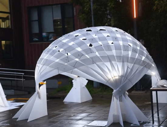 6月7日,2025年同济大学国际建造节暨2025“风语筑”塑料中空板建筑设计与建造竞赛在上海举行,我院黄耘、康雪、罗夏、刘炜老师指导的学生团队吕小禾、毛安昕、曹知远、王熙玉、梁宇涵设计建造作品“星际移民的乡土智慧”荣获竞赛三等奖。