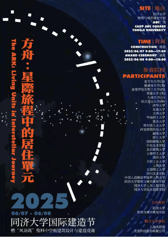 本届建造设计主题:“方舟:星际旅程中的居住单元”。科幻建筑是科技与想象的共生体,常见于文学作品或艺术创作中。在《三体》描绘的"太平洋一号"废墟中,建筑、声音与空间的异化关系打破了人类对"固定空间"的执念。在脆弱但又窸窣的环境中,建筑跨越时空之旅是无界且流动的,人类如何重新定义星际旅行中的“栖居”?建筑在受限于材料与施工的特殊要求下,是否可以平衡安全、实用与舒适,实现科幻建筑的“可建造”?真正的空间变革即将到来,星际旅程中的人类已向我们传来未来的声音。