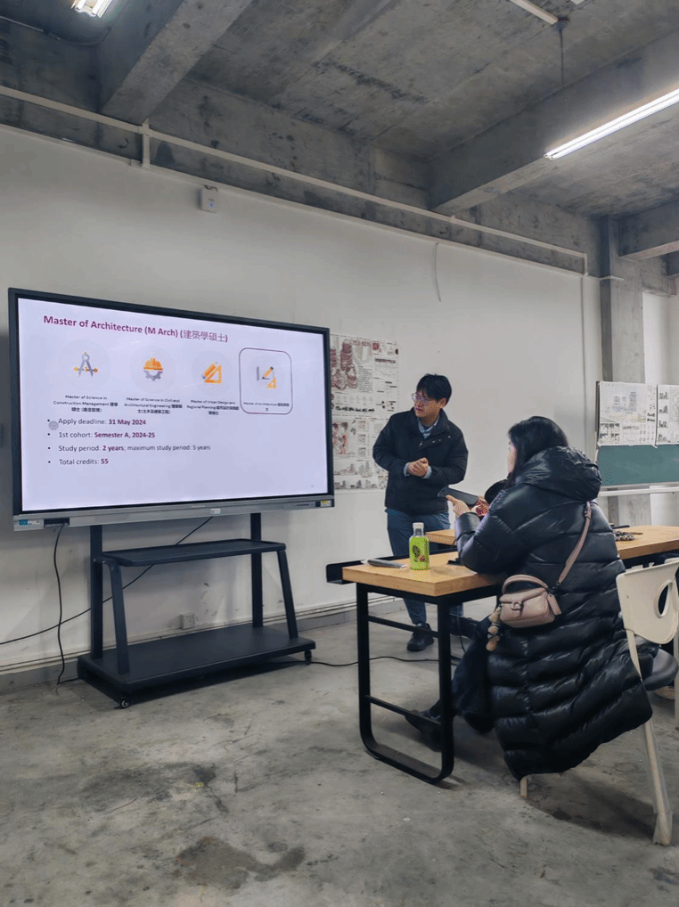 活动伊始,郑星分享了自己丰富的留学经历,从“大学排名”“地理位置”“交通情况”等方面切入话题,引出对香港城市大学建筑学与土木工程学系的详细介绍。其中,郑星聚焦于“建筑学及城市设计与区域规划”专业型学位,详细介绍了从“授课制”教学方式到学位申请的具体要求,帮助同学们进行更深入的认识。随后,郑星立足于行业就业情况,分析了香港建筑业及就业前景,根据专业型学位优势,从行业需求、人才短缺和毕业收入等多方面具体展开了详细阐述。
