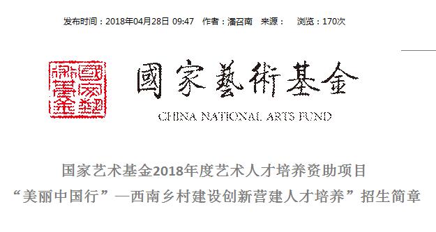 国家艺术基金是由国家设立,旨在繁荣艺术创作、打造和推广原创精品力作、培养艺术创作人才、推进国家艺术事业健康发展的公益性基金。《“美丽中国行”—西南乡村建设创新营建人才培养》是国家艺术基金2018年度艺术人才培养资助项目,该项目力求在新时代乡村振兴战略背景下探索西部乡村发展的营建方式,培养创新型、综合型的乡村建设人才,从而为“美丽乡村”建设,提供持续人才输出。