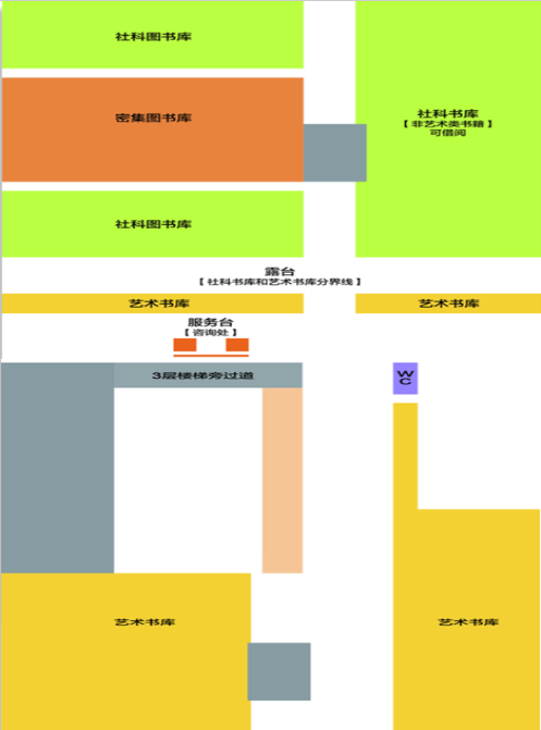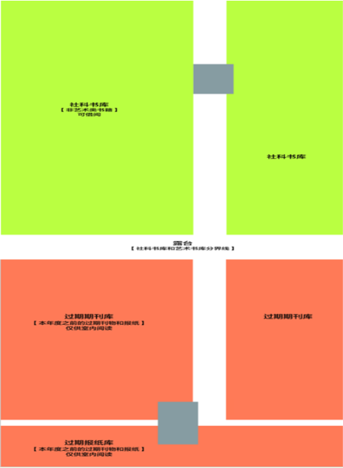 (3) 艺术书库和社科书库图书借阅。本室图书为开架图书,读者室内阅览和外借,室内阅览读者按需阅取,阅毕须放到原来位置。