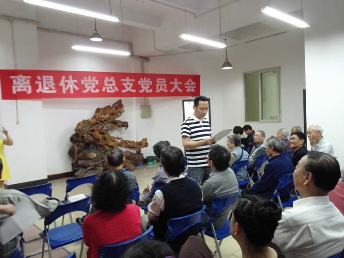 马彬彬同志宣读《中共四川美术学院委员会关于成立“学党章党规、学系列讲话,做合格党员”学习教育办公室的通知》;组织部部长胡刚同志向老党员们介绍了在全体党员中开展“两学一做”活动的重要意义、基本方法和总体要求,通过学习活动教育引导老党员始终做到“离岗不离党、退休不褪色”,为推进“科学发展、富民兴渝”贡献智慧和力量;总支委员曾凡英同志宣读《离退休党总支开展“两学一做”学习教育实施方案》,各支部领取、发放了“两学一做”学习资料。