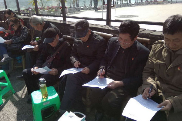 主题党日活动现场还开展了党的十九大报告知识竞赛。老同志们仿佛回到了学生时代,认真思考,慎重答题,体现出学习十九大报告的积极性和主动性,展现了老党员们“退岗不褪色,离休不离党”的精神面貌。