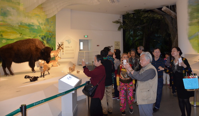 进入博物馆大厅,壮观的恐龙化石和大象标本令老同志们惊叹不已。在讲解员的陪同下,老同志犹如渴求知识的小学生,展开了一场探索大自然奥妙的神奇之旅。重庆厅各种长江鱼类标本的展示,包括两个巨大的中华鲟标本以及中华鲟从幼仔到长大的生长全过程让人叹为观止;恐龙厅各类雄伟壮观的巨型化石令人置身史前时代;生物厅栩栩如生的自然环境令人漫步于北美非洲大草原;贝林厅独一无二的珍稀动物标本则令人深思人与自然的关系。