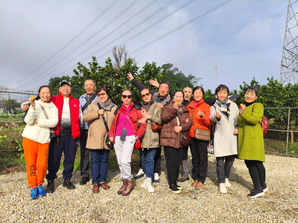 抵达庄园后,老同志们兴致勃勃地参观庄园景色,了解了冬季蔬菜、水果的种植技术和过程。时值橙子成熟的季节,冬日阳光下橙香四溢,老同志们脚步轻盈,如同在田园诗中漫步,感受着自然的韵律和生命的活力。在工作人员的引导下,大家还亲自体验了摘橙子、挖红薯的农耕乐趣,共享着这份来自土地的馈赠。