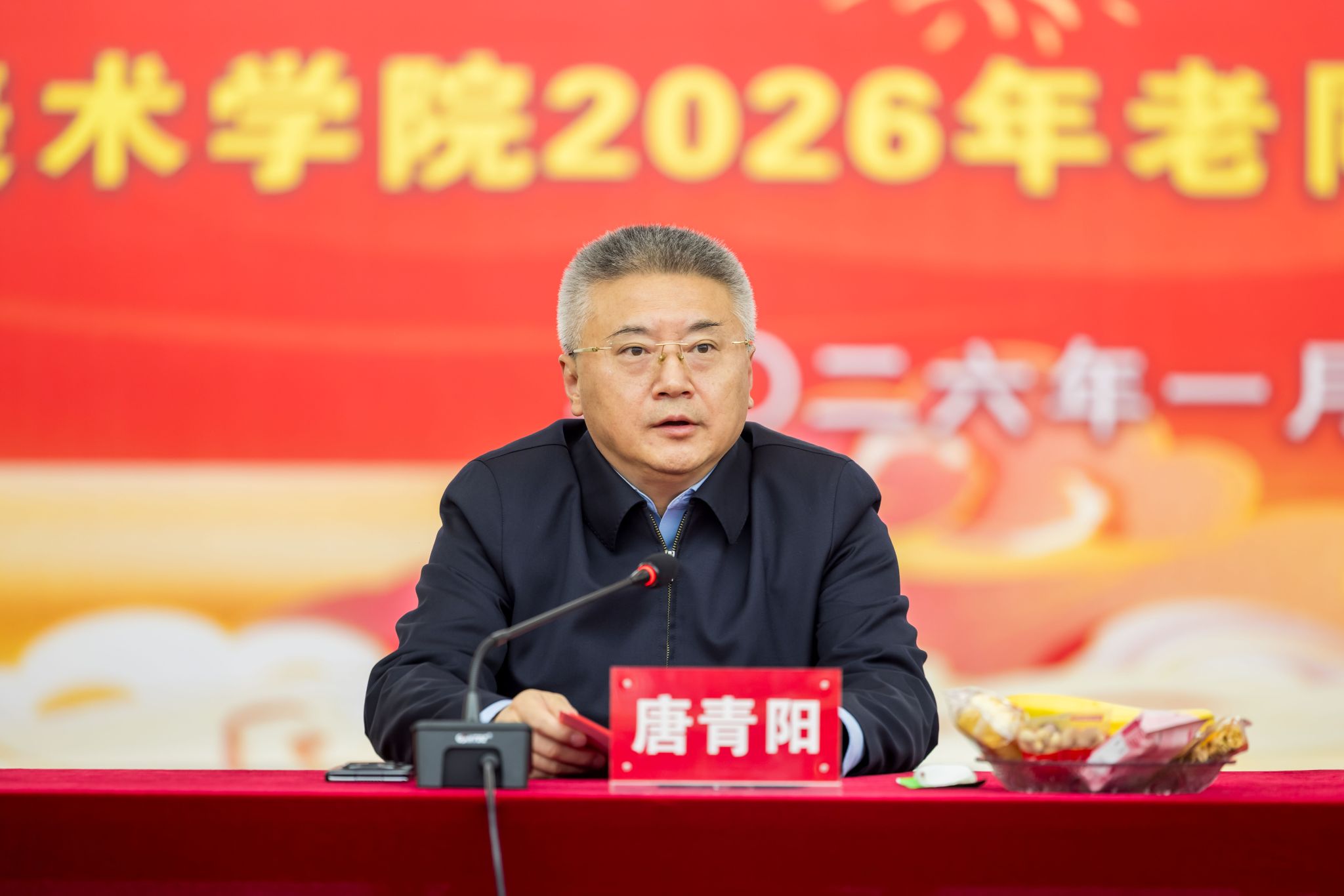 唐青阳书记代表学校党委和行政,向离退休老同志致新年贺词,传递对老同志的深切关怀与新春祝愿,并对老同志所作出的历史贡献予以充分肯定。
