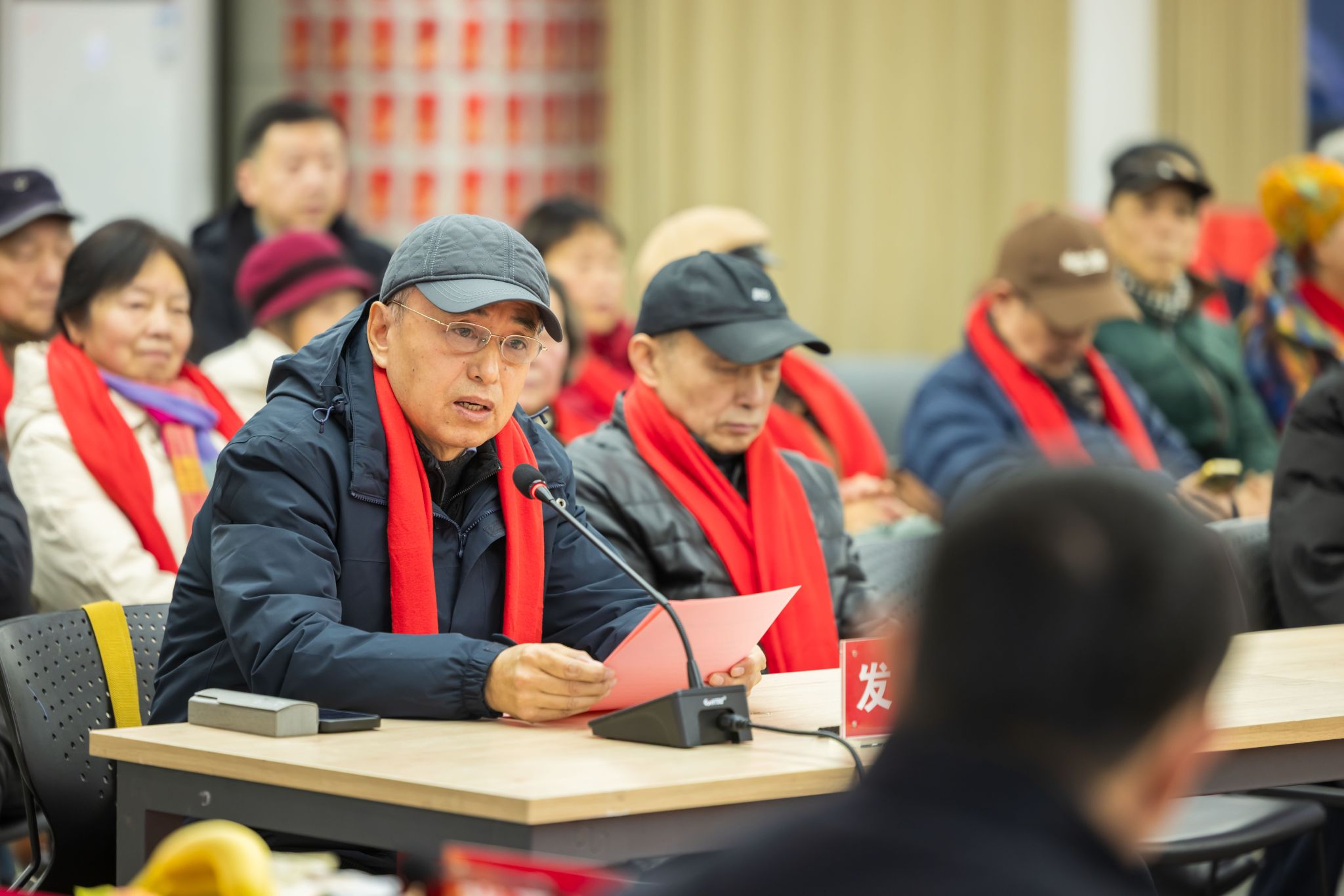 离退休老同志代表鲁邦林教授发言,他深情表示老同志们虽已离岗,但仍然与学校同向同行。他对学校给予离退休老同志的关怀照顾表示感激,呼吁离退休老同志继续为学校发展贡献智慧和力量。
