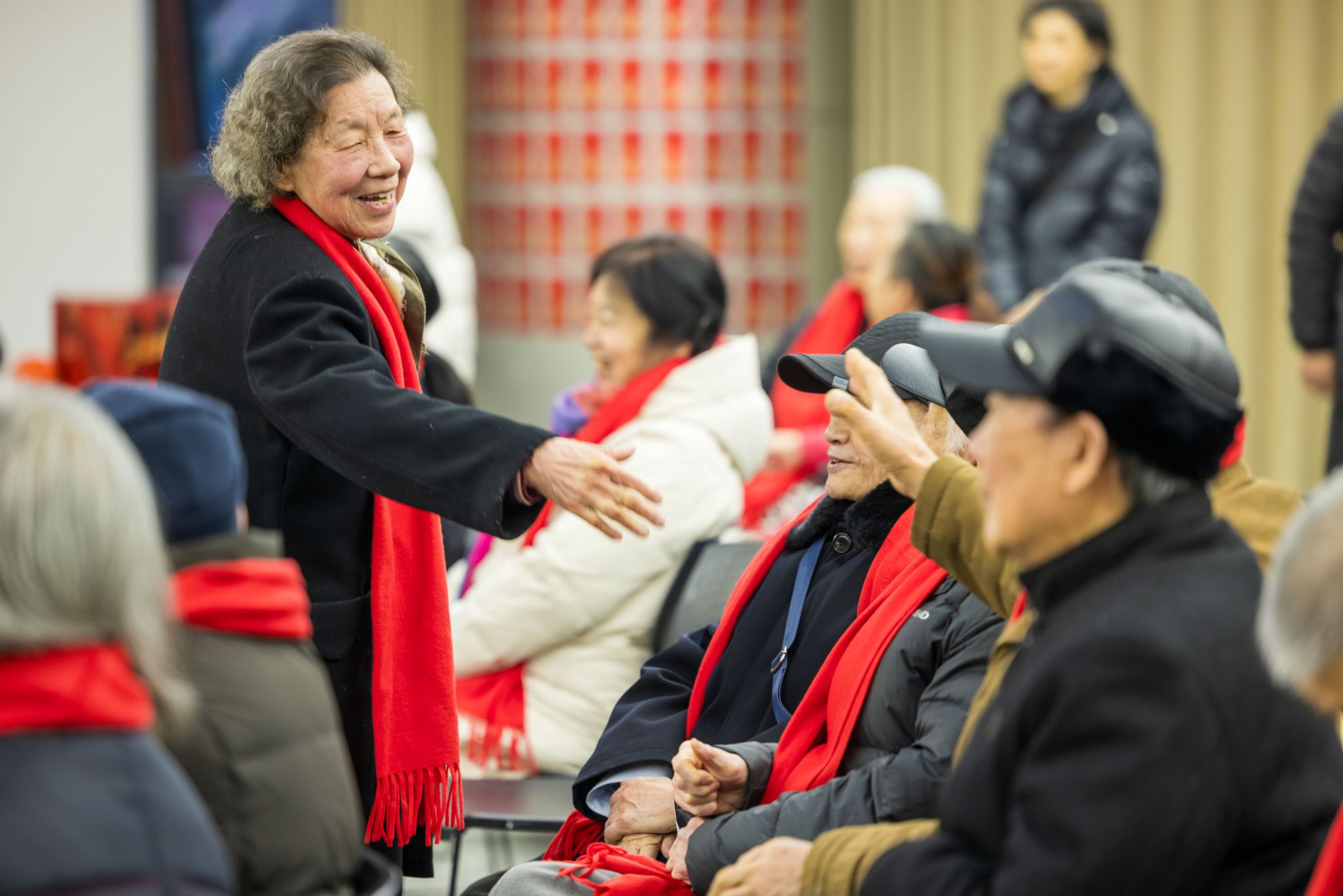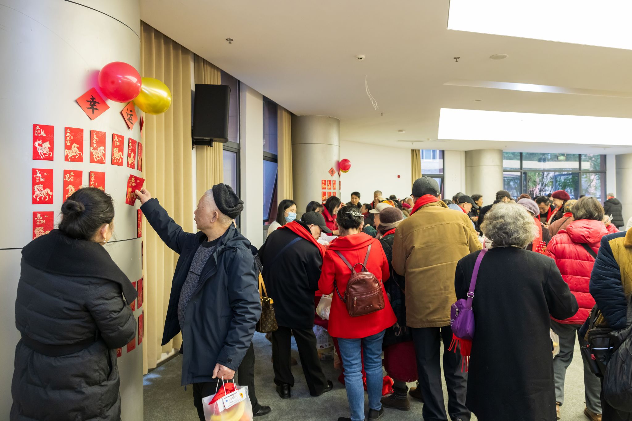 团拜会结束后,学校精心筹备了“集福迎新春”新春游园活动。老同志们积极参与新年幸运红包活动,集祥纳福,现场气氛热烈温馨。