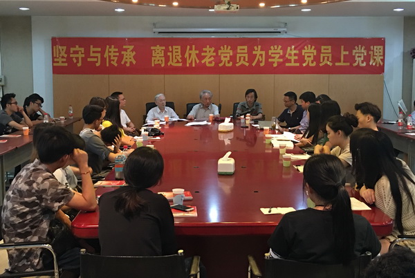 这次党课的主题是“坚守与传承”,内容围绕党的光辉历史和优良传统、老同志们的入党经历及其艺术追求和奋斗历程、“两学一做”的时代意义、当代青年党员的使命和责任等方面展开。党课专门邀请到我校德高望重的关工委活动积极分子、退休老党员、老艺术家龙德辉、张方震、傅仲超,为学生党员们主讲。
