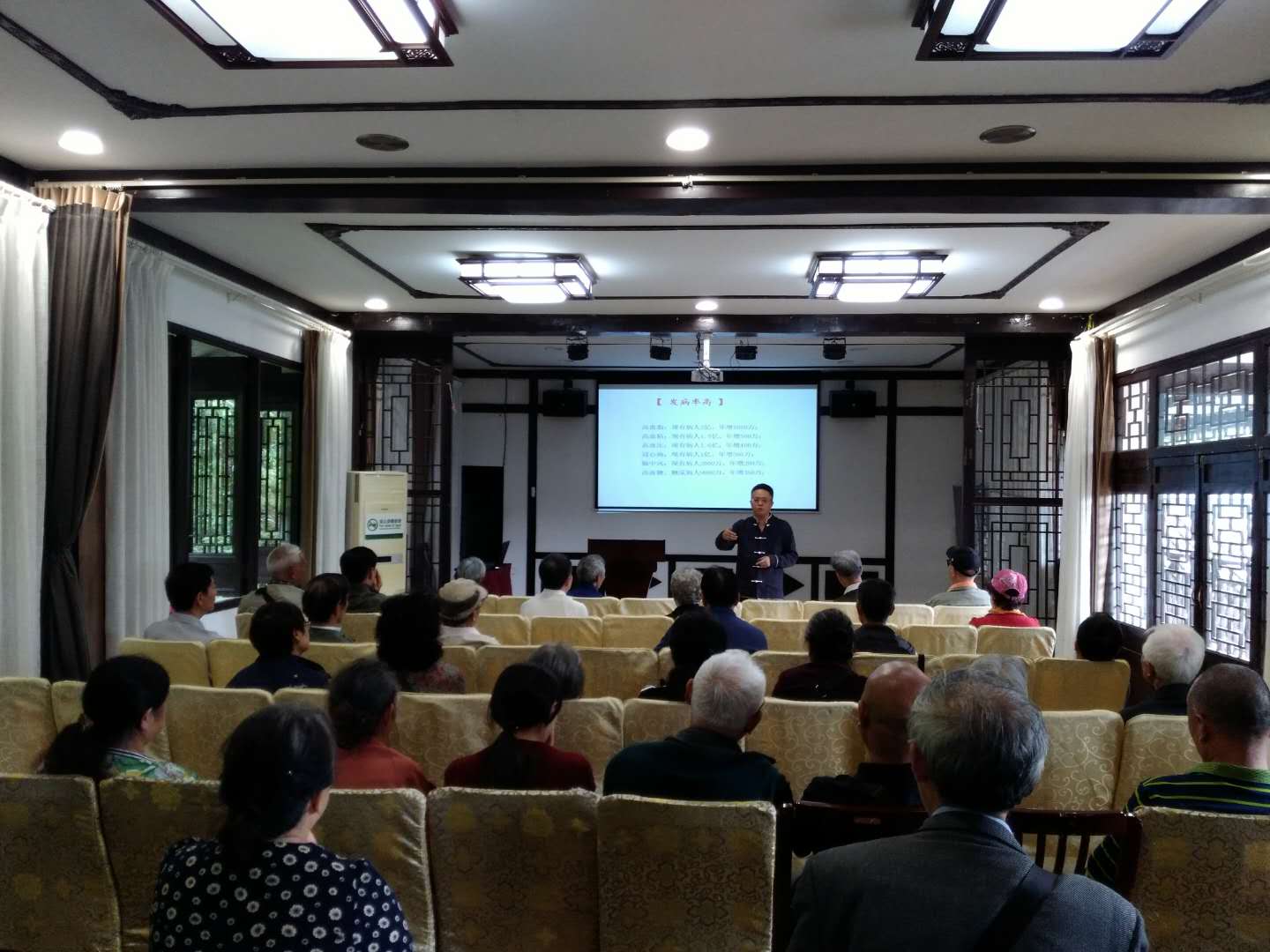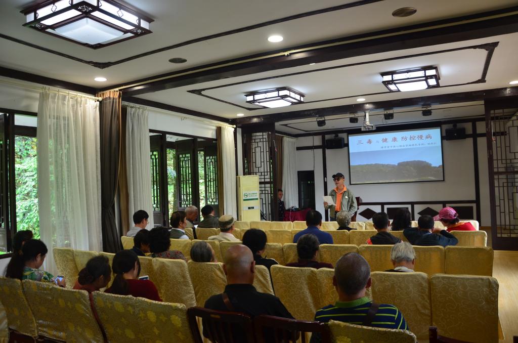 康复基地的心脑血管病专科主任、全国执业中医师田杰仁为老同志们举办了“三毒与健康—防控慢病”的健康养生知识讲座。他结合老同志的实际情况,详细介绍了从预防血毒、心毒和肠毒入手防控心脑血管疾病的知识和方法,并现场传授了康复健身操,受到老同志们的热烈欢迎。