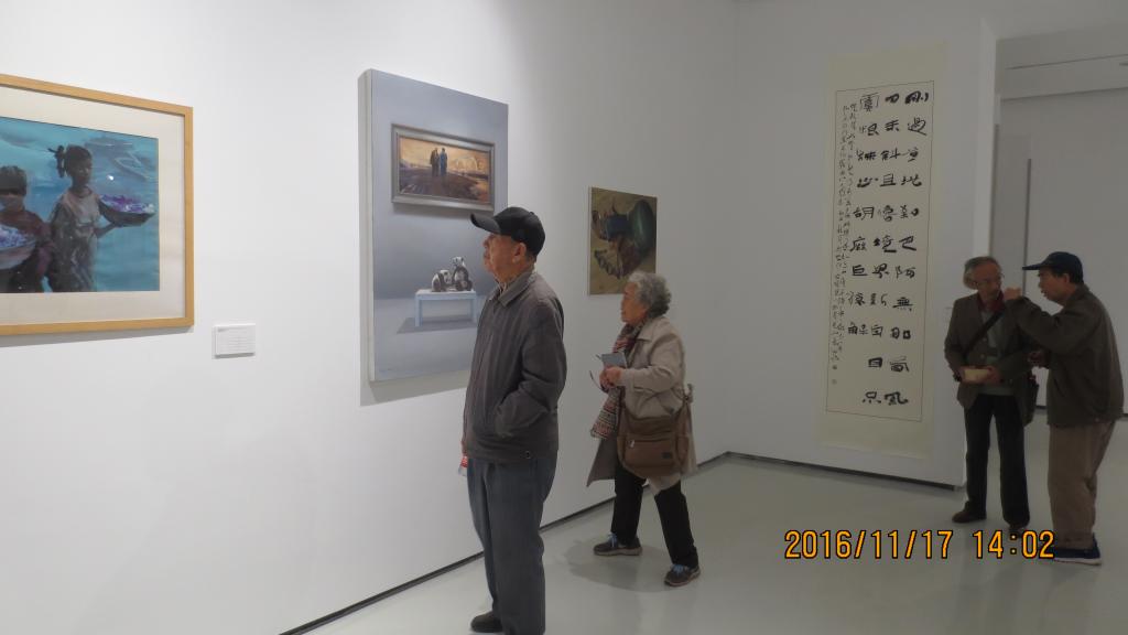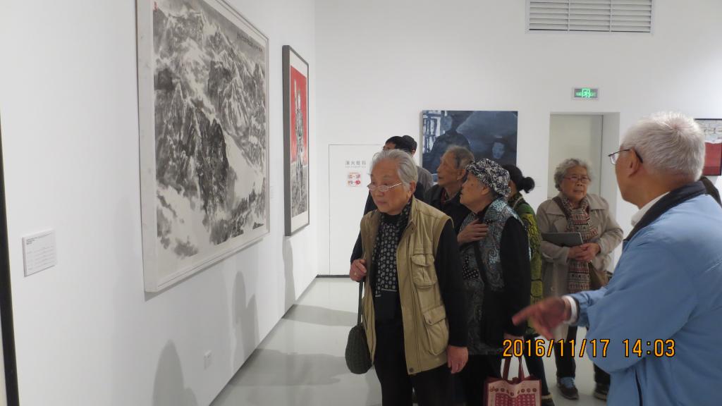 2016年11月17日下午,离退休党总支、老教授协会组织老校区20余名离退休老同志、老教授,到新校区美术馆参观了2016年学校教师作品年展。