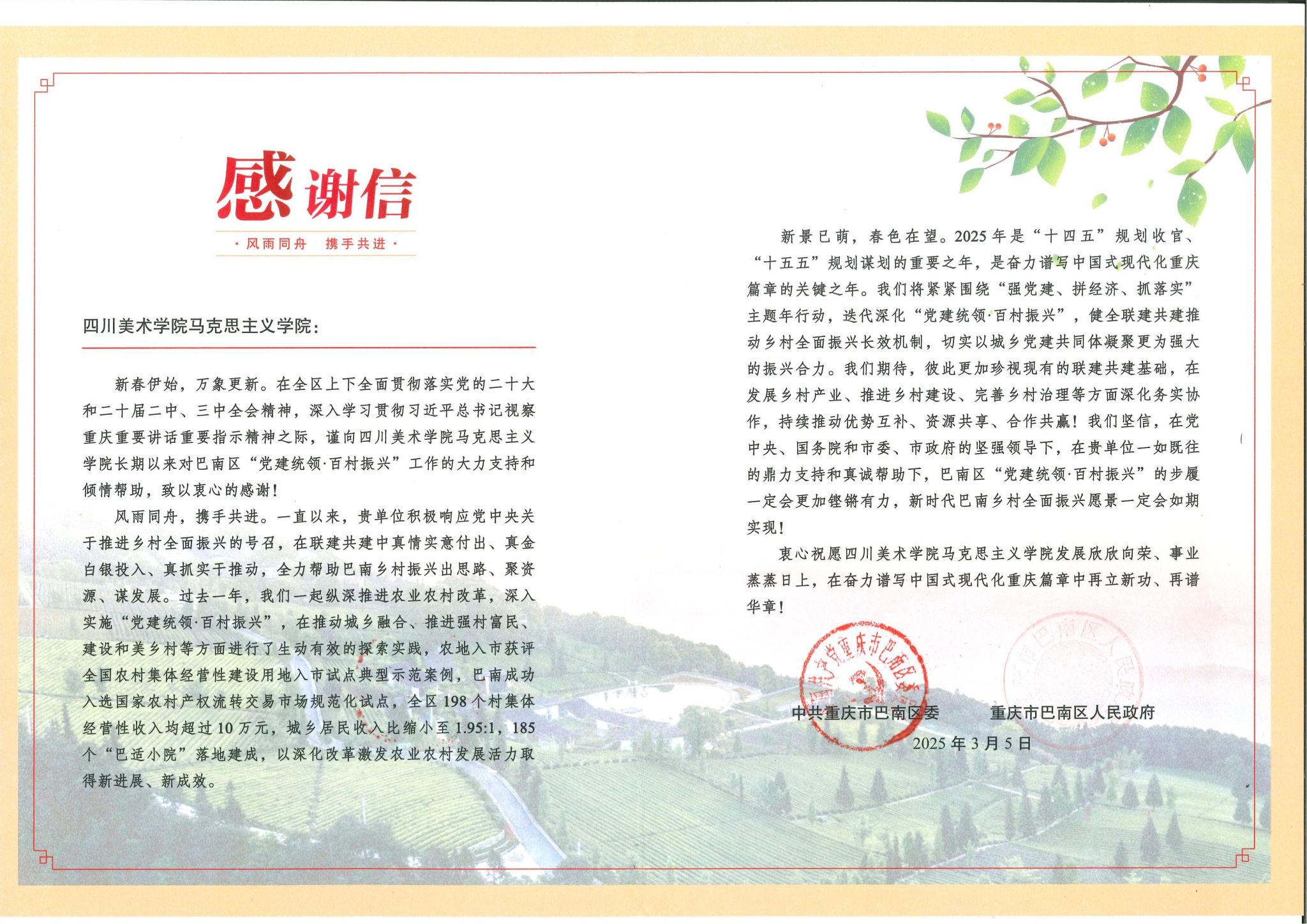 中共重庆市巴南区委 重庆市巴南区人民政府感谢信