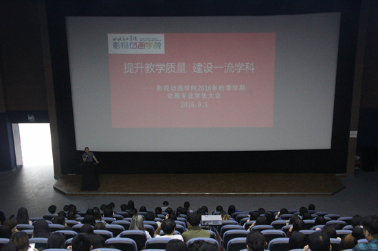 为响应国家建设一流大学和一流学科的号召,提升我院教学质量,加快培养拔尖创新人才,将思想政治教育与专业教育结合起来,影视动画学院于2016年9月5日下午15:40时在四川美术学院小剧场,召开全院动画专业学生大会。影视动画学院党总支书记柏在华、影视动画学院副院长周宗凯教授、动画专业教研室副主任王茜濡副教授、动画专业教师钟崇瑶老师、布志国老师,以及辅导员万玉珊老师、唐巧玲老师莅临现场,为动画专业的同学传授经验,为学生的全面成长成才进行指导帮助。