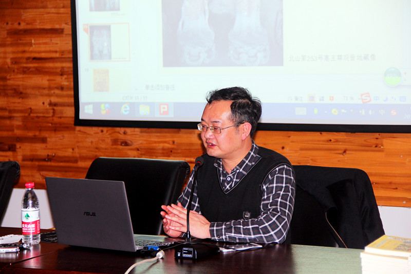 3月29日晚上,重庆大足石刻研究院研究馆员李小强在我校行政楼五会议室举行题为“寻“道”大足——大足石刻世俗化与道教研究”的学术讲座,视觉艺术中心常红红主持。