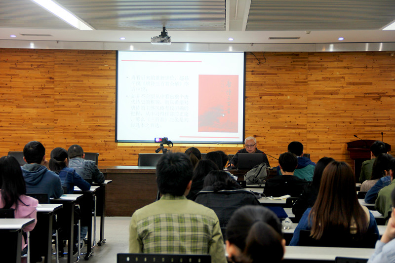 4月21日下午,我校美术学系在行政楼五会议室举办题为“唐诗的声音之道——从唐诗三百首说起”的讲座,讲座由美术学系倪志云主讲,美术学系邹建林主持。