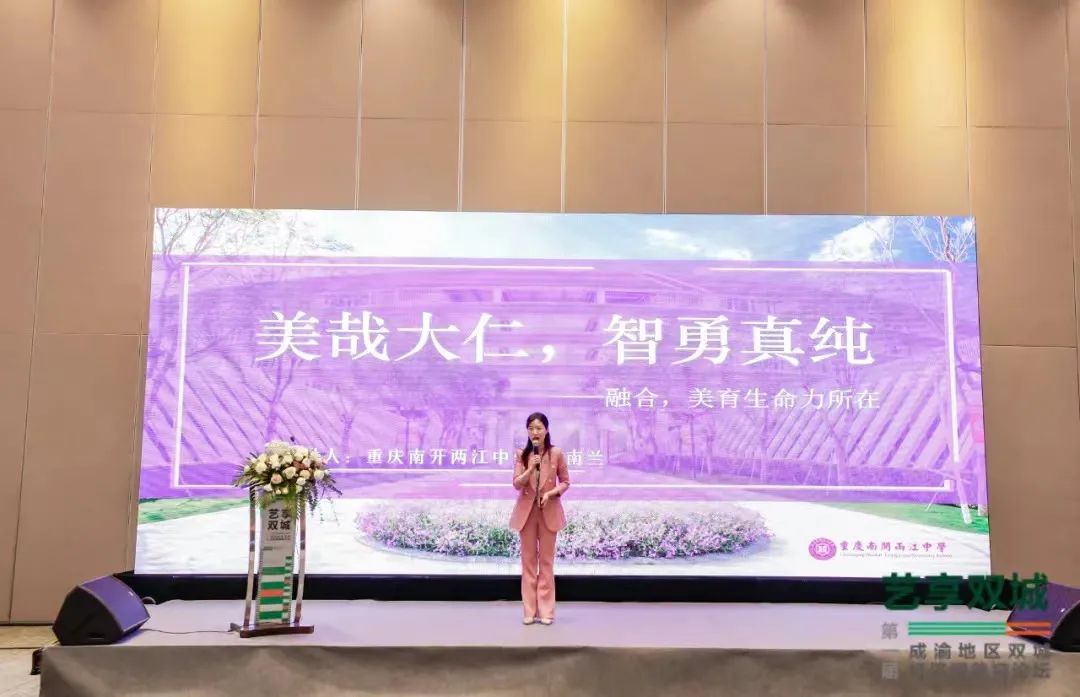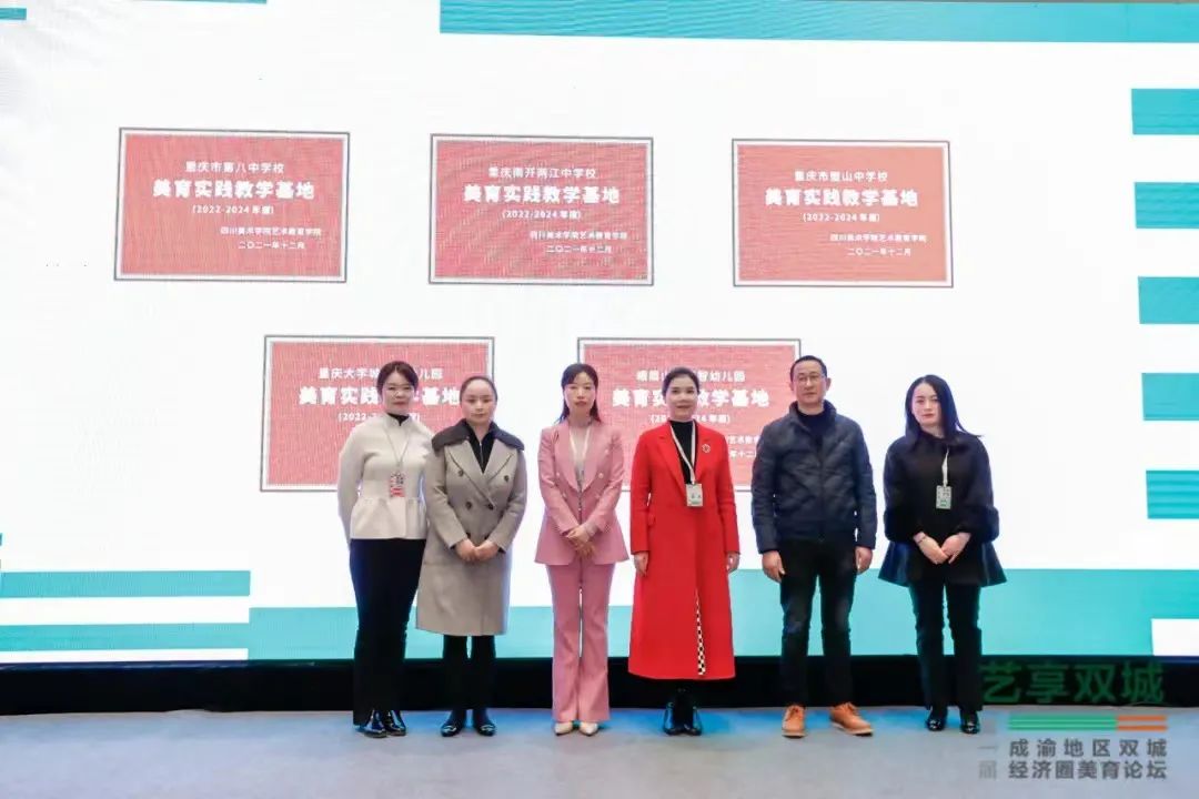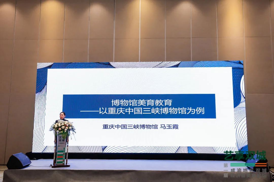 2021年12月22日,在重庆市教育委员会体育卫生艺术教育处、四川省教育厅体育卫生艺术教育处的共同指导下,由四川美术学院主办,四川美术学院艺术教育学院承办的“艺享双城——第一届成渝地区双城经济圈美育论坛”在重庆市大学城富力假日酒店举行。四川美术学院副校长张杰、重庆市文化和旅游发展委员会博物馆与社会文物处处长王发荣, 重庆中国三峡博物馆副馆长马玉霞、重庆自然博物馆党总支书记、馆长高碧春、四川博物院公教部主任王瑞昌、重庆市第八中学校副校长付英、重庆南开两江中学校副校长李南兰、重庆市璧山中学副校长杨帆等嘉宾出席了论坛。