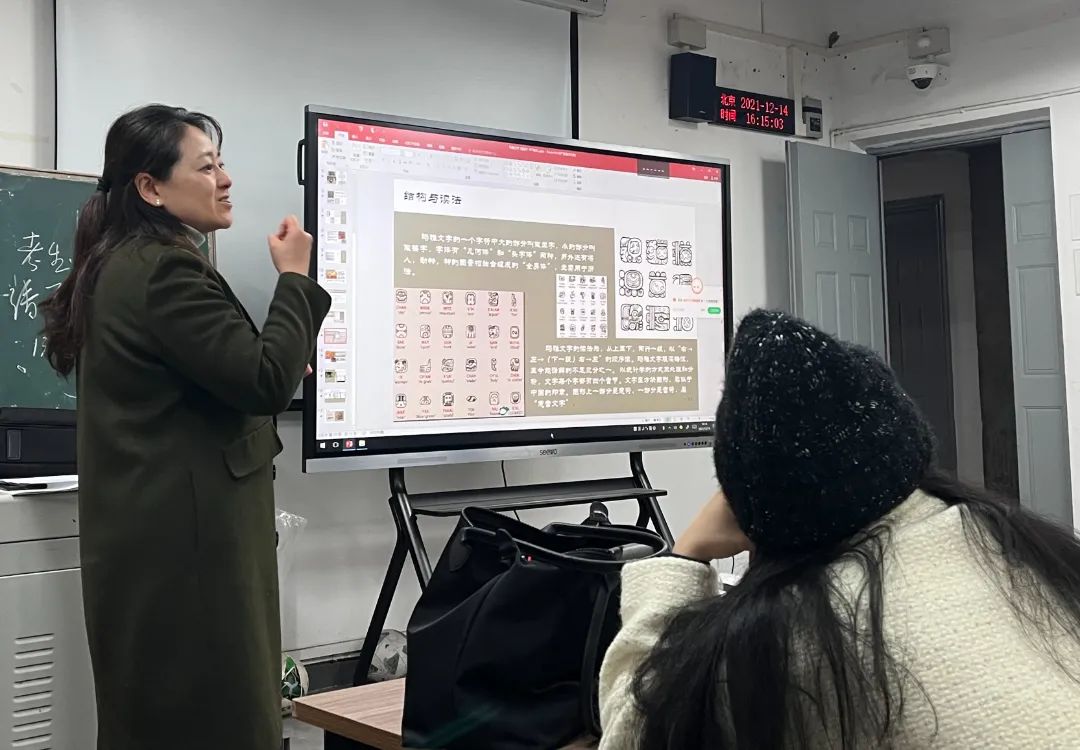 本次课程出席的有艺术教育学院郭昕副院长、设计教育系教师易平和牟艾莉。这门课程是副教授何彤与研究生谢京荣共同讲授和辅导完成,何彤对2020级1、2班的字体设计课程进行了介绍和评述,之后学生们积极发言,谈到在字体设计课程上的收获和学习不足的地方。