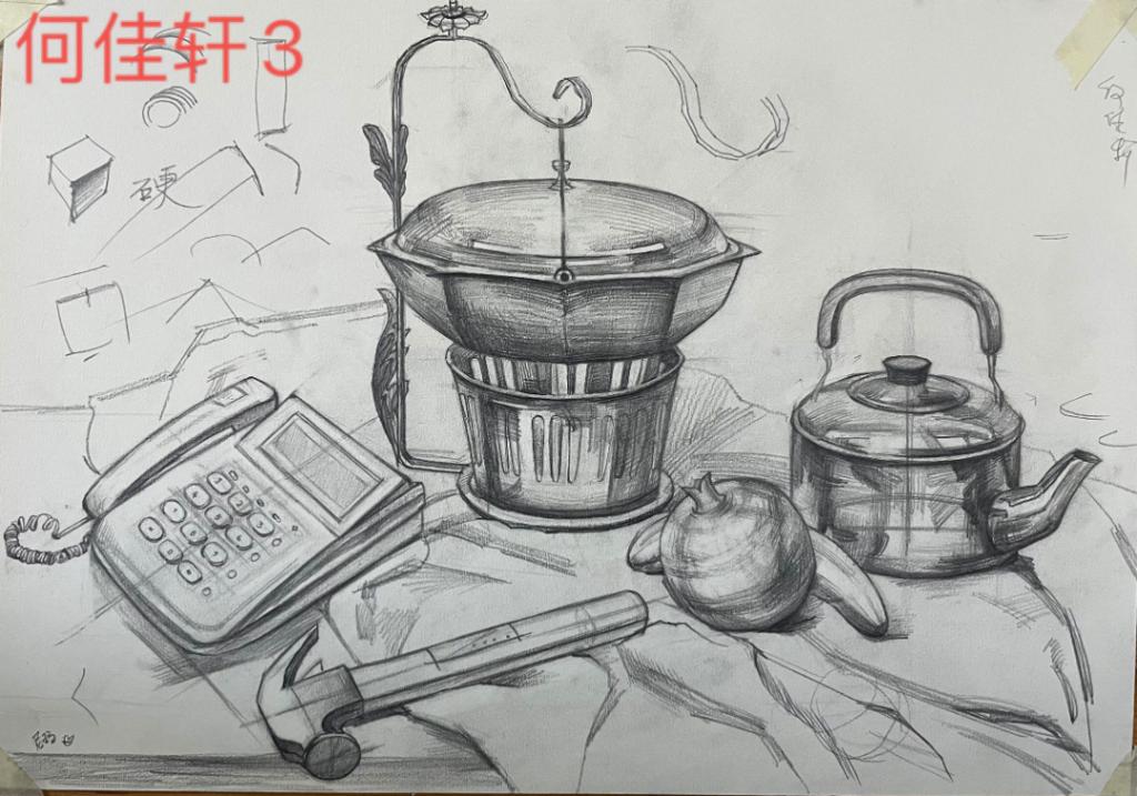 设计教育专业的基础专业课程教学面临一些具体的问题。一是课时短、内容多,二是同学们专业基础能力较弱。因此,设计素描课程侧重了在掌握材料、工具性能基础上进行准确观察和表现,同时强调对形体内在结构关系的认识与视觉效果的创造,注重在客观观察与主观表现的转换过程中的抽象经验的积累,培养思考与认识能力的同时结合实践推动综合能力的提升。任何一个知识点的掌握和技能训练的提高都需要一个过程,重要的是对所学知识的认识与判断!同学们在学习的过程中很快地进入状态,打开自己,主动沟通与交流,呈现出轻松、积极的学习状态,在对学习内容与要求的深入理解的基础上进入了更主动的学习,为以后的专业学习打下了良好的基础。