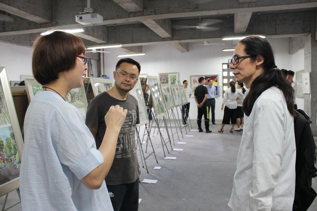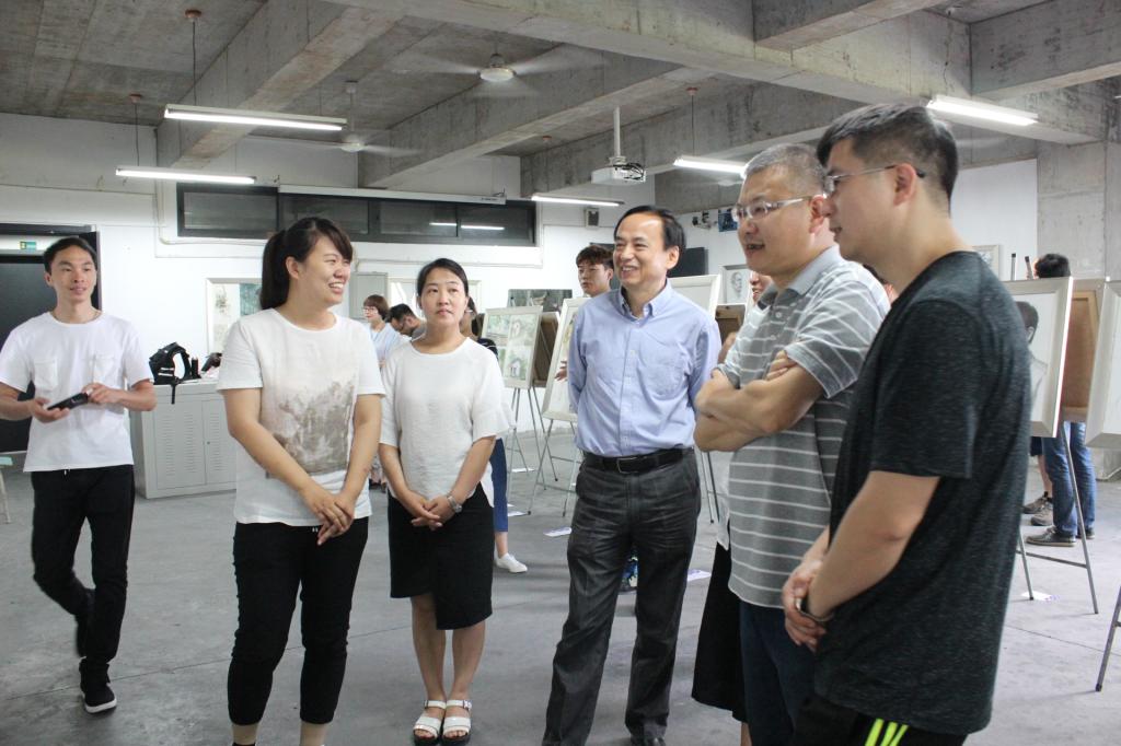 四川美术学院左益副书记、侯宝川副院长、系主任杨吟兵及学校组织部胡刚、人事处王劲、宣传部贾安东、教务处王天祥、财务处宋宗祥等相关职能部门负责人也先后参观了汇报展,并与学员们进行了热情友好的沟通和交流,高度评价了本次培训所取得的成绩,并对今后更好的发挥艺术教育服务社会的功能进行了商讨。