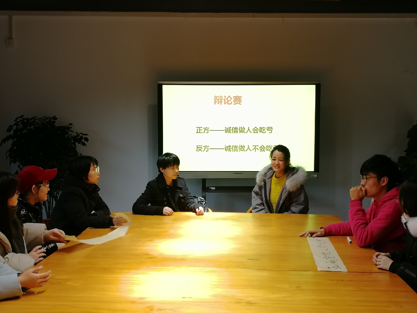 美术教育系以班级为单位,结合传统文化、法律法规、校纪校规,开展诚实教育、守信教育以及遵守法律法规、校纪校规和社会公德教育,开展了形式多样的诚信教育主题活动,主要活动形式有集中宣传、主题班会、知识竞赛、辩论赛、诚信故事分享会、诚信格言分享交流等。