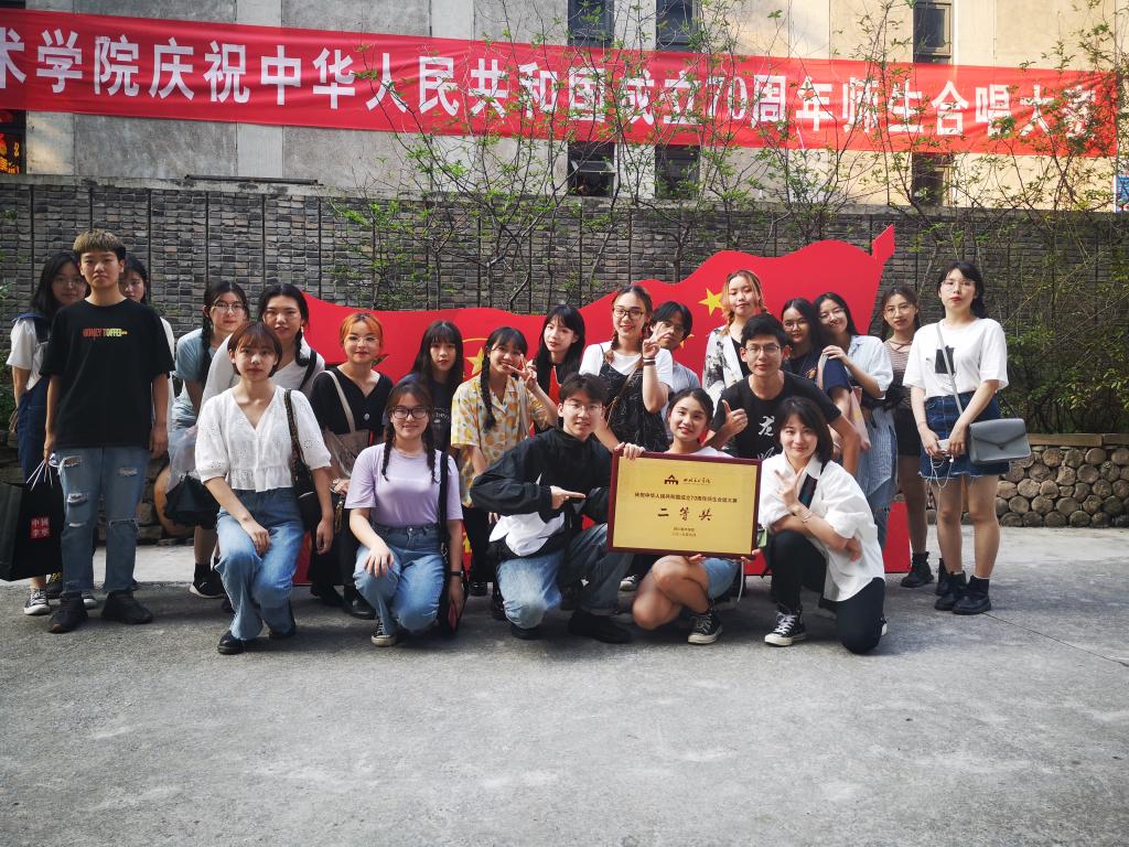 艺术教育学院代表队派出包括艺术教育学院党政领导、师生党员、入党积极分子等师生共计八十余人参加比赛,演唱曲目为《保卫黄河》和《七子之歌》。在经过近两周刻苦专注的训练,艺术教育学院的师生们最终为观众们呈现了一场精彩绝伦的视听盛宴,并荣获“四川美术学院庆祝中华人民共和国成立70周年师生合唱大赛”二等奖。