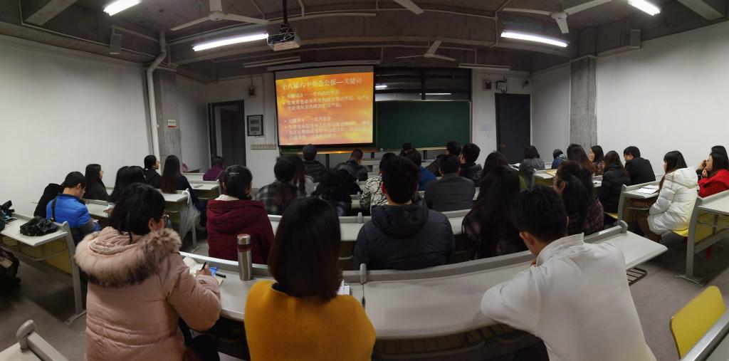 会上,党总支书记刘建峰首先对十八届六中全会关键词进行了深刻的解读,要求党员同志必须高度重视和认清学习贯彻六中全会精神重大而深远的意义,在会后要继续加强学习《关于新形势下党内政治生活的若干准则》和《中国共产党党内监督条例》。