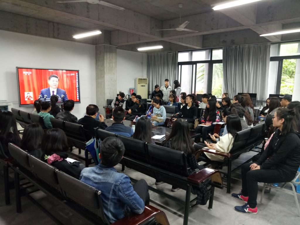 中国共产党第十九次全国代表大会是在全面建成小康社会决胜阶段、中国特色社会主义发展关键时期召开的一次十分重要的大会,是全党全国各族人民政治生活中的一件大事。为及时学习宣传贯彻十九大精神,美术教育系党总支积极组织总支师生党员及教师、职工、学生代表在ZC301集中收听收看党的十九大开幕会的盛况,并广泛动员全体师生员工通过各种形式收听收看。认真聆听习近平总书记作的报告,并学习研讨,深刻领会党的十九大精神。