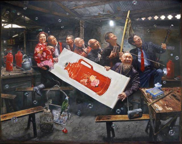 陈安健《茶馆系列—喜乐平安》 入选第十三届全国美展