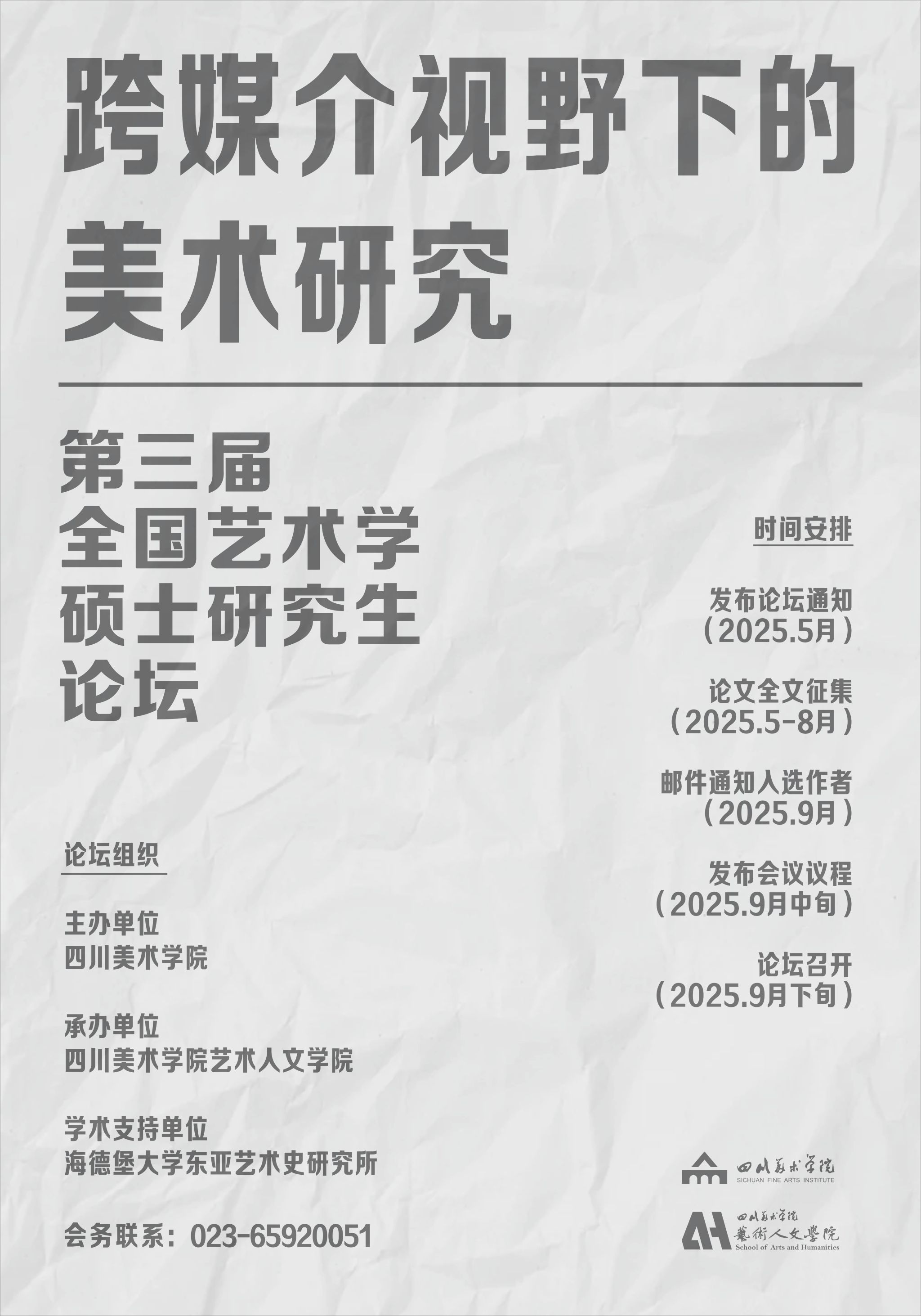 四川美术学院美术史论专业设立于1996年,1998年正式招生,已经为社会培养了一批具有专业素养的专门人才。在2003年,艺术人文学院开设立视觉文化策划与管理方向,2013年秋季,积极响应国家有关文化遗产保护的政策,增设艺术与文化遗产方向,并成功地组织生源。