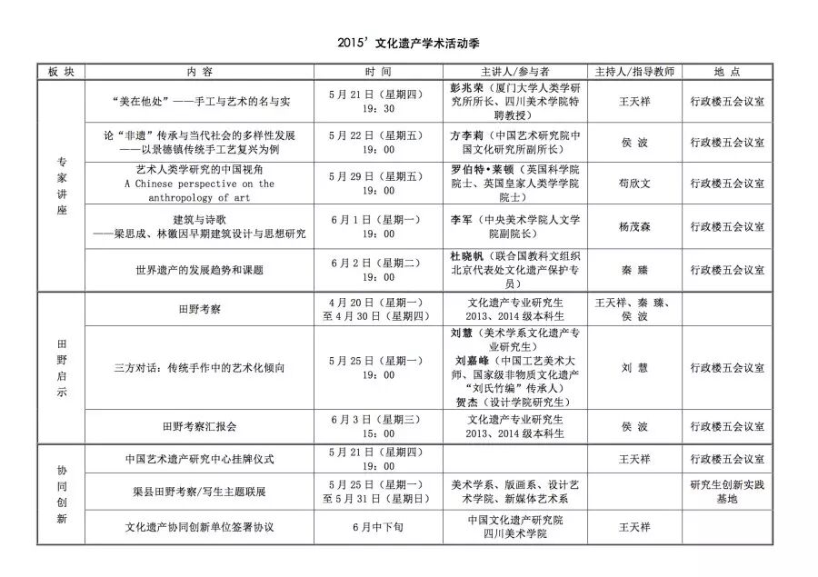 由美术学系承办、大足学研究中心与长江上游民间艺术研究所协办的“文化遗产学术活动季”,旨在构建理论与实践的融合,激发青年学子钻研学习的热情,同时营造浓厚的协同创新培养与学术研究氛围,推动我校“艺术与文化遗产”专业的学科建设。今年活动季的主题为:艺术遗产的理论与范式。