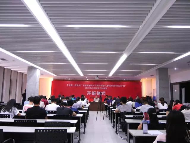 重庆市文化委员会钟建波副主任在开班仪式上发表讲话,对四川美术学院为这次培训所做的准备工作给予了高度评价,认为这次培训规格高、起点高、要求高,希望学员们认真学习、相互切磋、珍惜机会、多思多悟、加强交流、共同提高,要妥善安排学习和工作的关系,不辜负文化部、文化委等各级政府的期望,要站在传统文化高度上学有所成,学以致用。