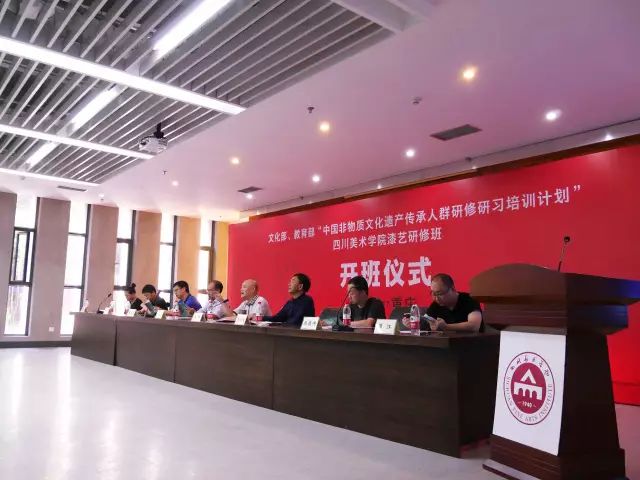 2017年9月12日上午,由重庆市文化委员会主办、四川美术学院承办的“文化部、教育部中国非物质文化遗产传承人群研修研习培训计划四川美术学院漆艺研修班”开班仪式在川美虎溪校区启动。重庆市文化委员会钟建波副主任,非物质文化遗产处王发荣处长,四川美术学院副院长张杰教授,党委常委、纪委书记苟欣文教授及相关部门、院系负责人出席开班仪式。