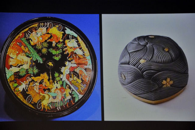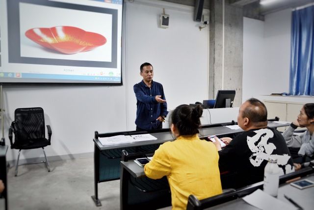 “创作过程一定比结果重要”,曾老师告诉学员们。他觉得创作就是一场恋爱,感受与体验非常重要,他将自己的每一件作品都视为自己的孩子。曾老师通过大量的漆艺作品案例分析,以及分享自己的作品以及创作过程,告诉学员出奇而又贴切的想法,是创意产品的制胜法宝,要在情理之中,出意料之外。他还强调了创作的三个最重要的原则:有态度、有观点、有方法。
