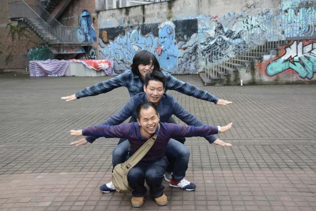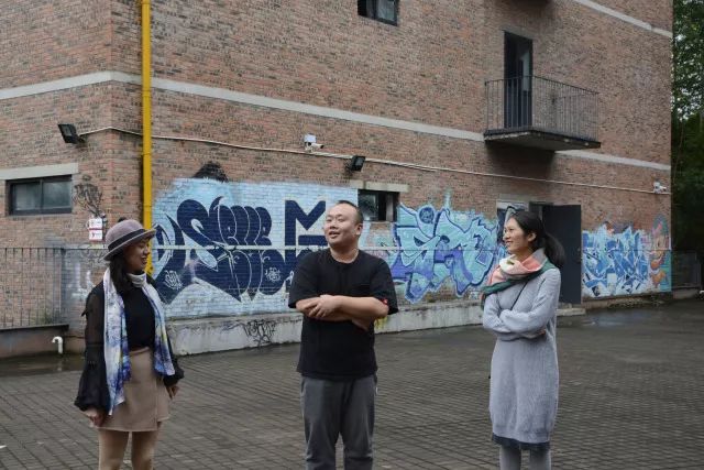 课堂结束之际,曾老师带领学员们到室外做了一个小游戏,他让自己与学员们围成一圈作为一个“共同体”,他们都是共同体的一部分,每个学员要用自己身体的某一部位来书写自己的名字,其他学员需和他一起书写,共同体来决定其方法是否过关,每个学员所选方式不可重复。曾老师用手来做了示范,学员陈桂花用脚,朱竹霏用头,陈俊华用肩膀,所有学员都用了与其他人不同的方法,用身体书写出了自己的名字。曾老师最后说到,希望用这个小游戏让大家明白,创作基于环境产生,由共同体,也就是时代语境决定其是否过关,作品最重要的是与其他人不一样,因为差异性决定了丰富性,差异的价值丰富了共同体。