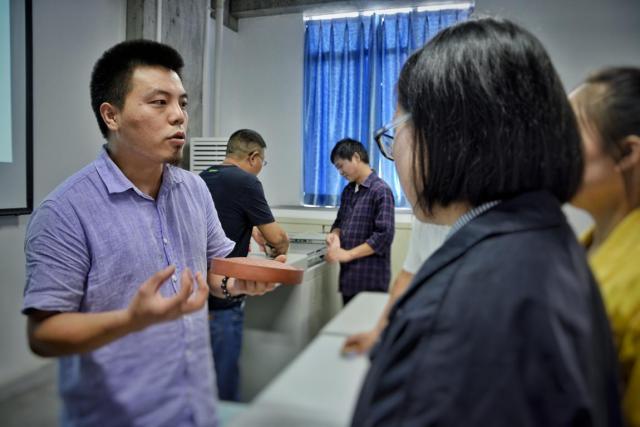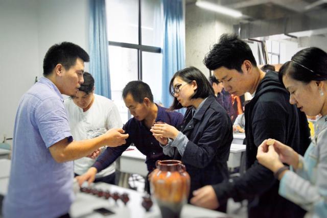 刘冬老师为漆艺研修班学员讲解荣昌陶相关知识