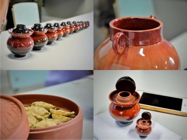 首先,刘吉芬老师做了简单的自我介绍,然后对他带来的作品进行了讲解。精美的陶罐,从小而精巧的微型泡菜坛,到釉色精美的日用泡菜坛,每一件都很精致。刘老师向漆艺研修班的学员们介绍了荣昌陶的发展历史、创制工艺、陶器特点以及发展现状,同时还以现场的泡菜罐为例,与学员交流陶罐与漆艺技术结合的可行性。