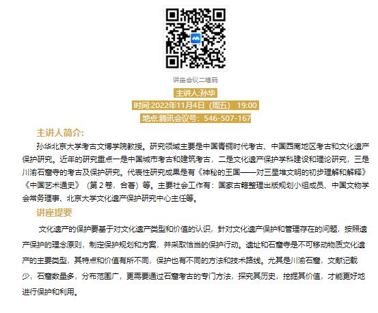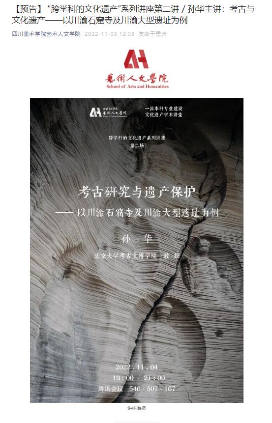 【预告】 “跨学科的文化遗产”系列讲座第二讲 / 孙华主讲:考古与文化遗产——以川渝石窟寺及川渝大型遗址为例