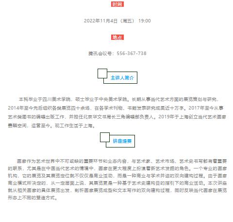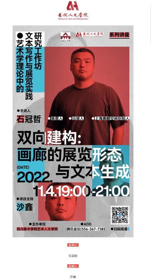 【讲座预告】系列讲座第五讲/石冠哲主讲/双向建构:画廊的展览形态与文本生成
