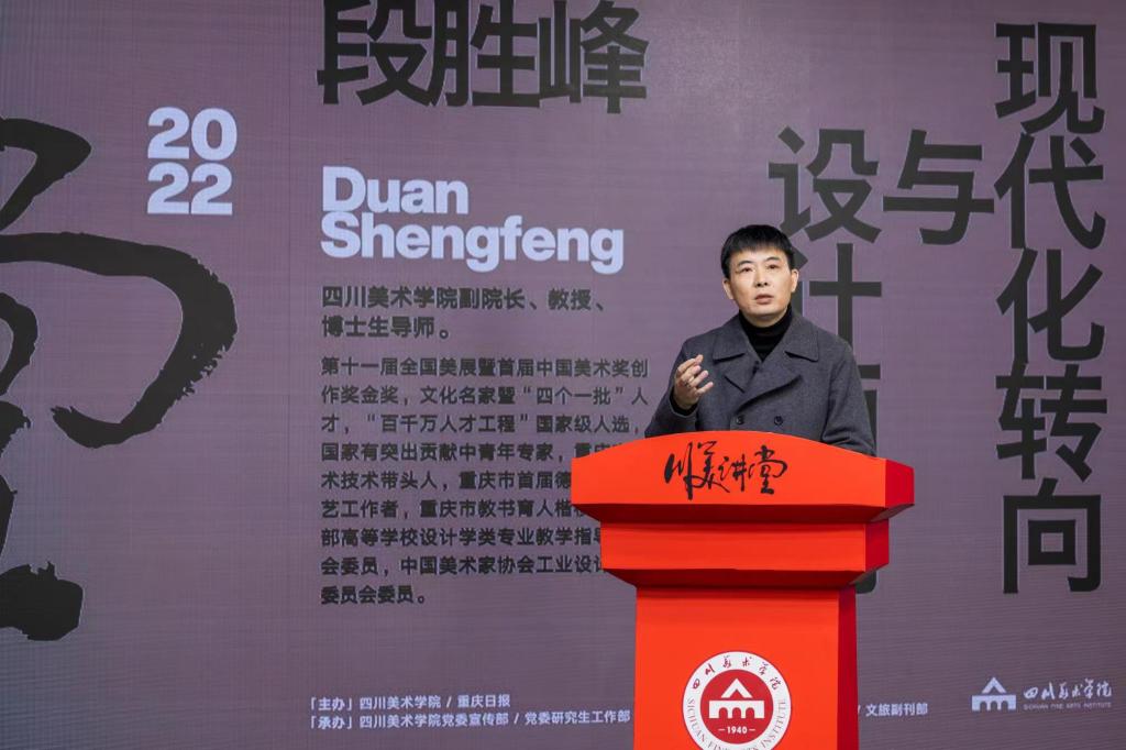 “中国的设计要回应中国式现代化发展之需,做人民设计师。”11月22日下午,由四川美术学院、重庆日报联合主办的“川美讲堂”第二季第二讲开讲。四川美术学院副院长、教授、博士生导师段胜峰走进直播间,和广大网友分享了“现代化转向与设计面向”的话题,吸引约35万人次观看。