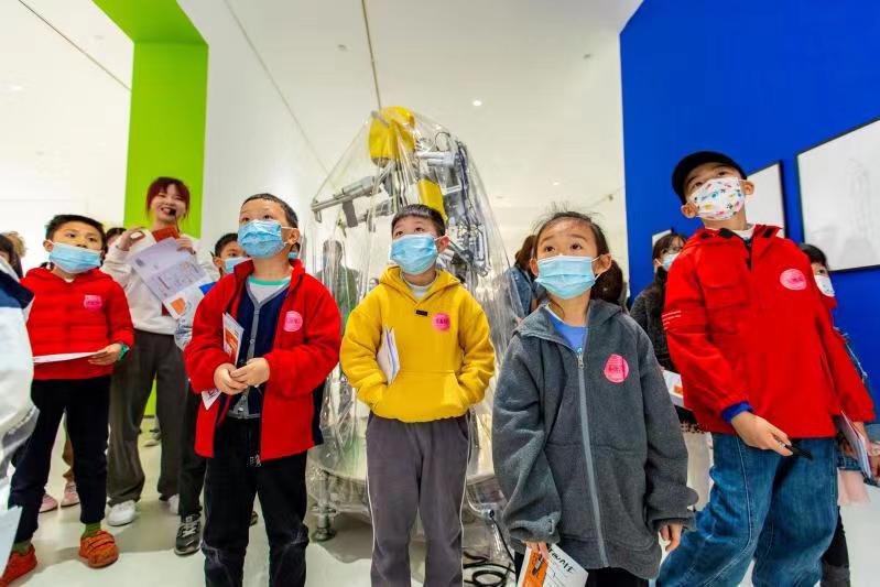 4月3日上午,美术馆迎来了参与游学活动的16组亲子家庭。在讲解员的带领下,大家首先参观了美术馆这一件巨大的“艺术作品”的外观设计和展陈空间。随后,亲子家庭参观了“罗中立奖学金2020年度获奖作品展”。在讲解员生动的导览下,小朋友们了解了每件作品的呈现方式和潜在含义,龙文老师则从旁引导大家发散思维,带着问题和思考来看展览,结合所想所悟在游戏手册上进行了再创作。获奖艺术家吴雨航也来到现场与小朋友们分享他的作品及创作思路,小朋友们也积极地发言提问,与他进行了互动和交流。