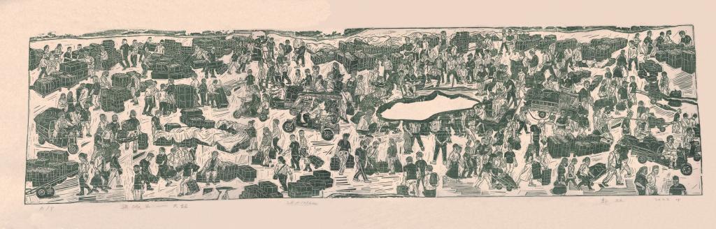 郭双《进城之大姐》26_101cm木刻油印,2022年