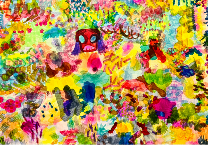 唐金凤《到底是谁在挤我?》156x120cm 纸本马克笔 2022年 四川美术学院